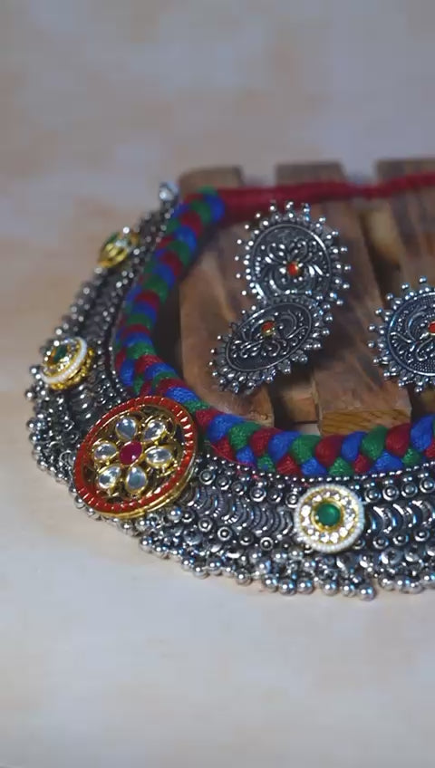 To maintain the shine and quality of oxidized jewellery, keep it in a dry place and avoid exposure to moisture, perfumes, or harsh chemicals. Use a soft cloth to clean it gently.