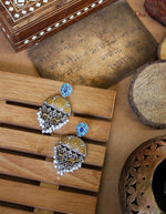 Milap Danglers showcase a sophisticated blend of oxidised silver with gold plating, enhanced by vibrant gemstones that bring a lively charm to your ensemble. Expertly crafted, these earrings are ideal for festive occasions, adding a touch of elegance and color to complement your celebratory attire.