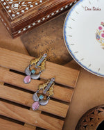 Elevate your collection with Ratna Haathi, featuring an oxidised silver-plated base adorned with vibrant pink and turquoise gemstones. This exquisite piece pairs these striking colors with an oxidised gold-plated elephant motif, blending traditional craftsmanship with contemporary elegance. Ideal for those who appreciate detailed artistry and unique design.