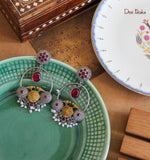 Ratna Panchi Bali features a striking combination of oxidised silver and gold plating, enhanced by a radiant red gemstone centerpiece. The elegant pearl closure adds a refined touch, making it an ideal accessory for festive occasions. Expertly crafted, this piece balances traditional charm with contemporary style, perfect for elevating your festive wardrobe.