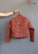 The Ajrakh Noor Blazer is more than just a chic crop blazer; it's a heartfelt blend of tradition and modernity crafted from premium cotton fabric. With its beautiful Ajrakh block prints, this piece showcases intricate patterns that reflect centuries of skilled craftsmanship, inviting you to embrace heritage in your wardrobe. The soft, breathable cotton ensures that you stay comfortable throughout your day, making it a reliable companion for any occasion. Designed in a flattering cropped silhouette, this blazer features lovely copper-colored buttons that add a warm touch of elegance. Ideal for those who wish to make a statement while cherishing their roots, the Ajrakh Noor Blazer allows you to embody both grace and boldness in your style.