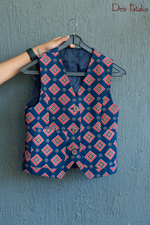 A fusion of heritage and modernity, the IndiRani Crop Vest is a statement piece that effortlessly blends tradition with contemporary fashion. Featuring intricate geometric prints on a rich blue base, this sleeveless vest is designed for the bold, free-spirited woman.