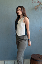Elevate your wardrobe with the Noir Blanc Vest, a unique blend of contrasting prints that merge contemporary fashion with artisanal charm. The asymmetric black and white design, accented with subtle handwoven motifs, creates a bold yet elegant statement. Crafted from breathable fabric, this structured vest coat is perfect for layering over ethnic or western outfits, making it a must-have for effortless styling.