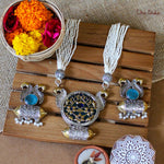 Add some colorful charm to your wardrobe with the Morpankh Necklace. The pearl thread and finish give it a dual tone effect while the colorful gemstones pendant makes it a unique statement piece. Express your fun side with this quirky necklace!