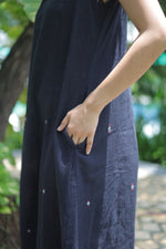 A-line Kalidaar midi dress in black Kala Cotton weave.