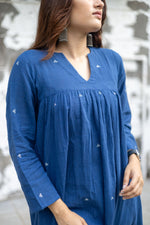 A soothing blue and white Kala Cotton weave, handwoven in Kachchh.
